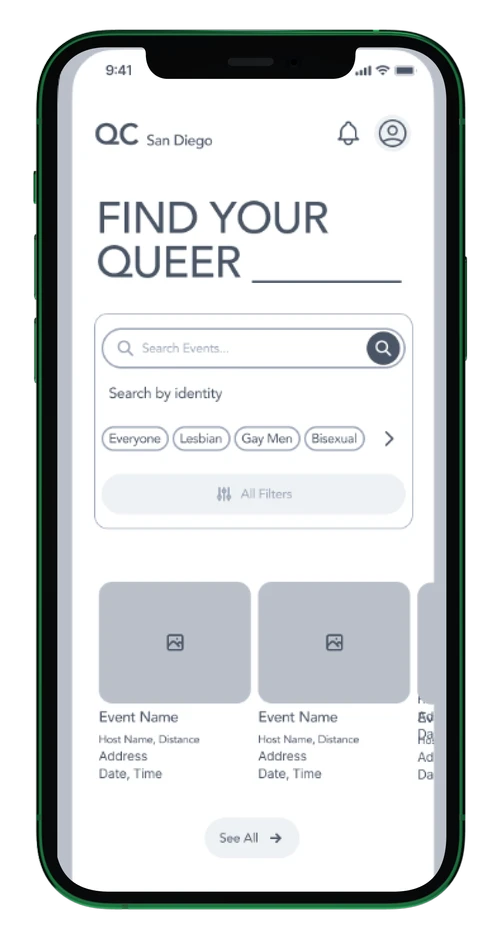 Queer Calendar is an event discovery platform designed to help LGBTQ+ individuals easily find inclusive, affirming events in their local communities. The project aimed to address a gap in existing event platforms, which often lack identity-aware filtering, safety signals, and community-centered design.
